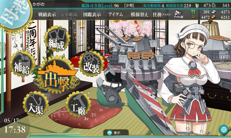 イベント中に翔鶴ちゃんが改装をむかえました。弾薬350と鋼材750です。このくらいは何の問題もないですね。