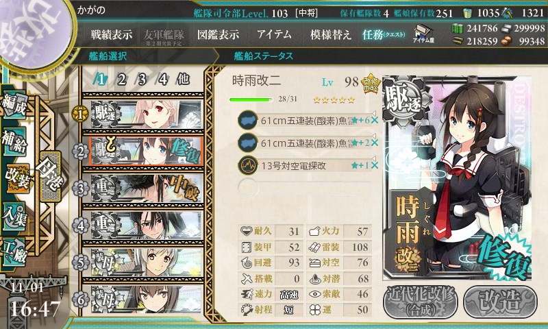 先日のメンテナンスで艦隊編成の記録機能が実装されましたがかなり便利ですね♪