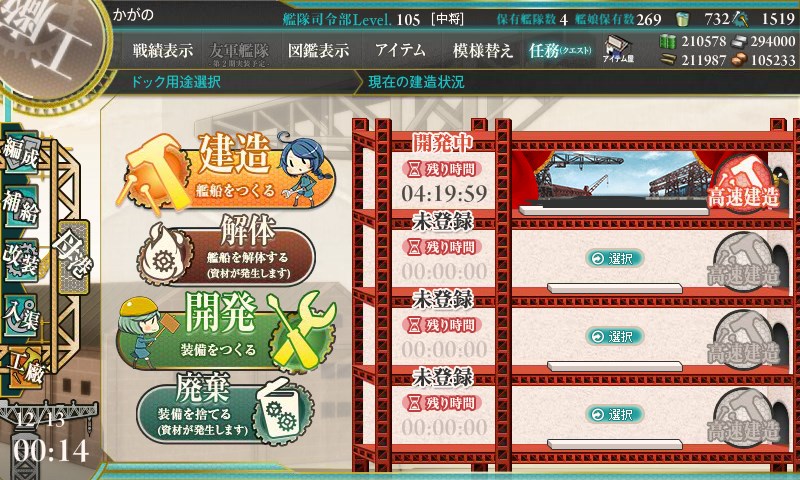 毎週定期的に大型艦建造をやります。ビスマルクと武蔵が出るといいな~。
