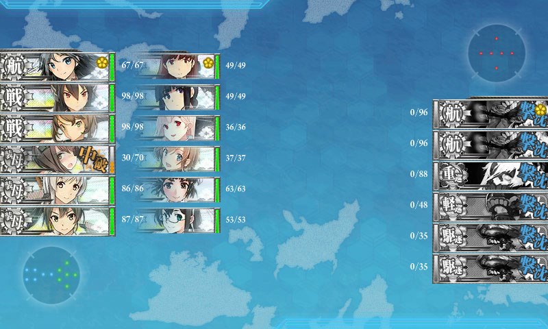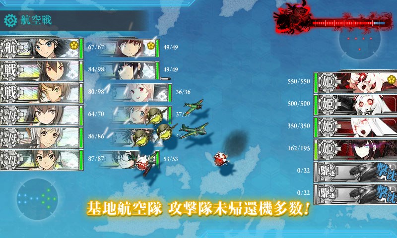 航空戦終了時です。あまり威力が出ていません。