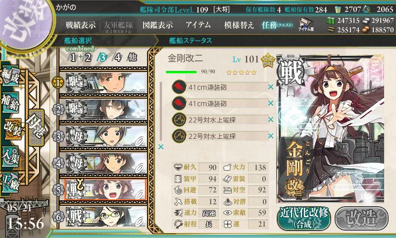 葛城ちゃんは嫁なので旗艦に入れました。
