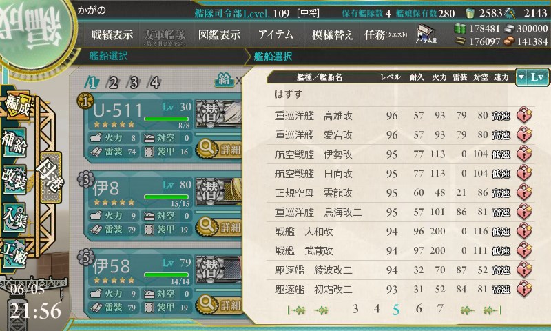 木曾がレベル98まできました。夏イベントまでにはケッコンできそうかな。