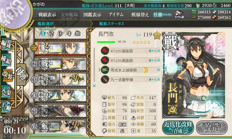 第1艦隊は制空値はそれなりで攻撃力を高めにしてみました。