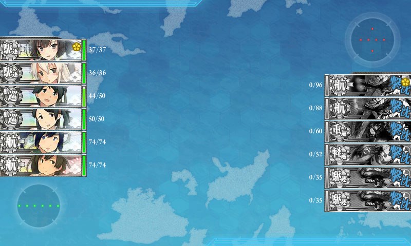 どちらにも戦艦がいないので昼戦が1巡で終わってしまうのが地味につらいw