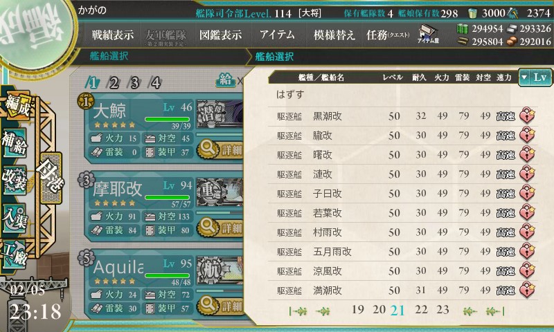 イベント直前ということでレベル2以上の艦娘をすべて載せておきます。誰が活躍するかな?