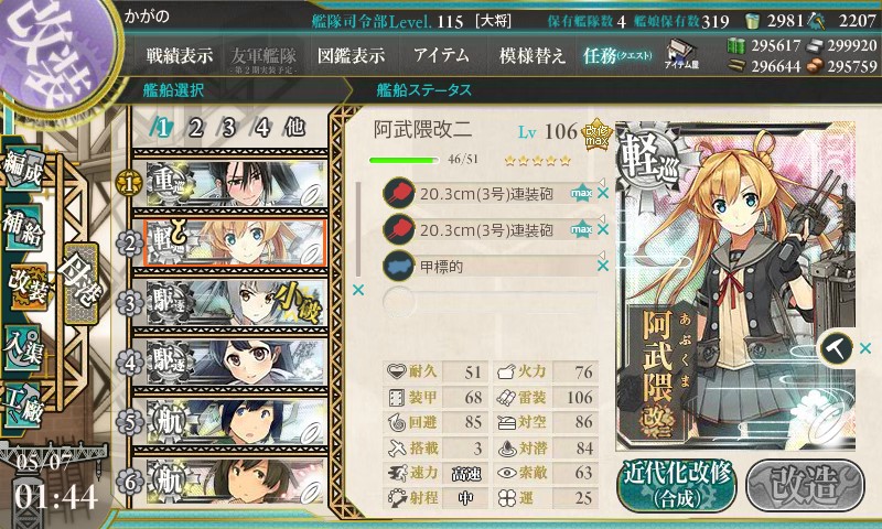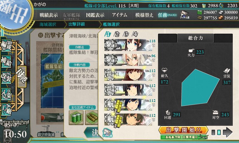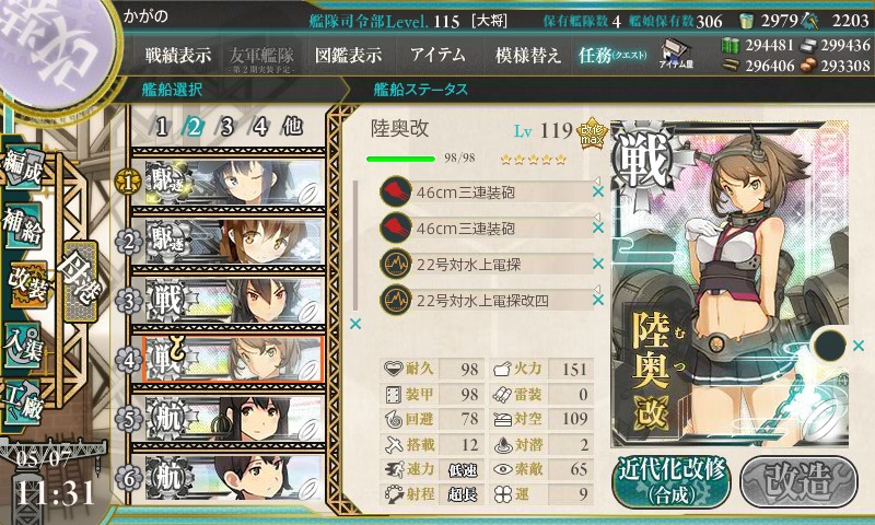 あとは駆逐艦を2人入れることと高速統一あたりがポイントです。