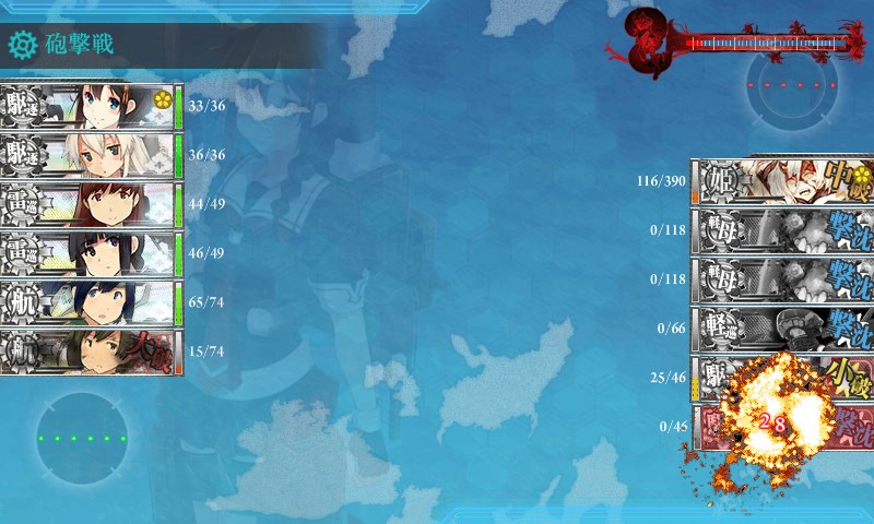 姫の攻撃を行動済みの飛龍ちゃんが引き受けてくれたのも助かりました。