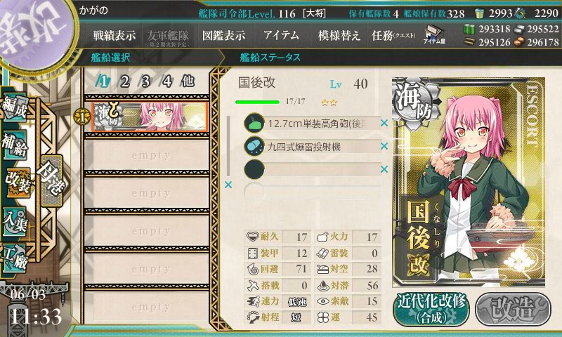 今週は占守ちゃんと国後ちゃんが改装を迎えました。