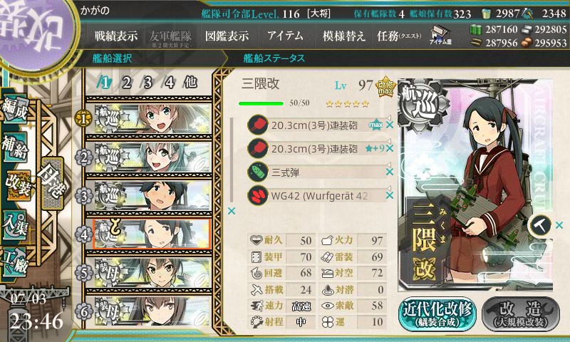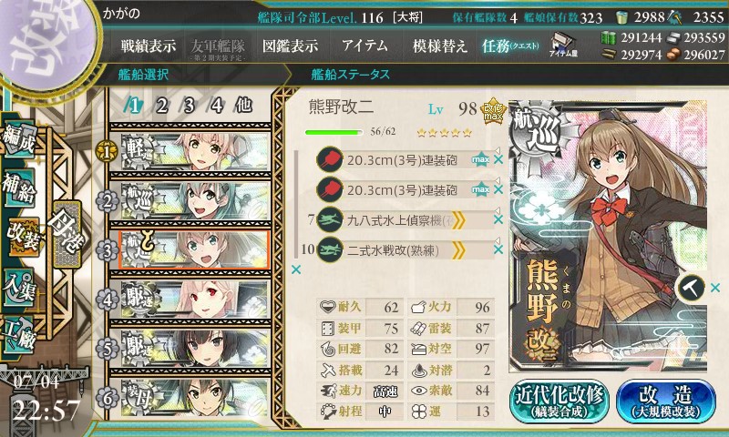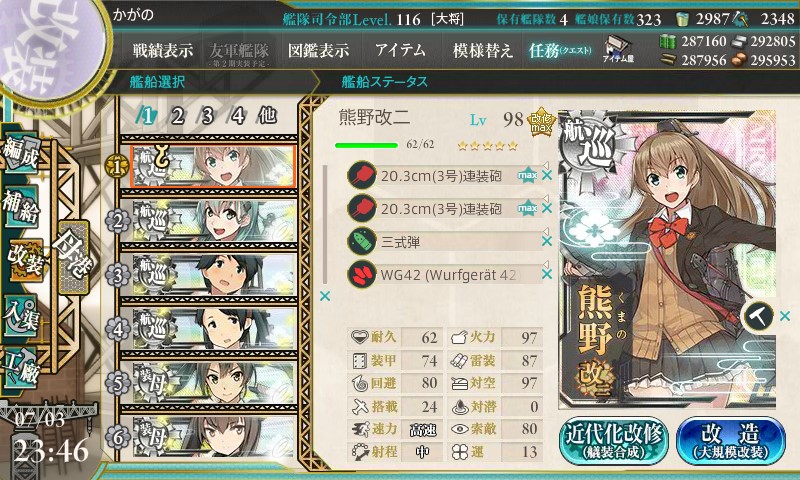 まずは熊野ちゃん改二任務です。