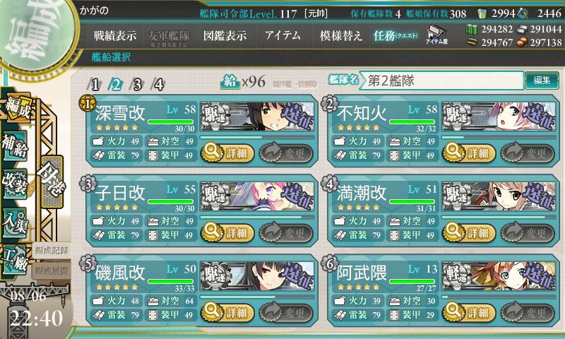 演習3回の任務を達成すると第二二駆逐隊の出撃任務が出ました。