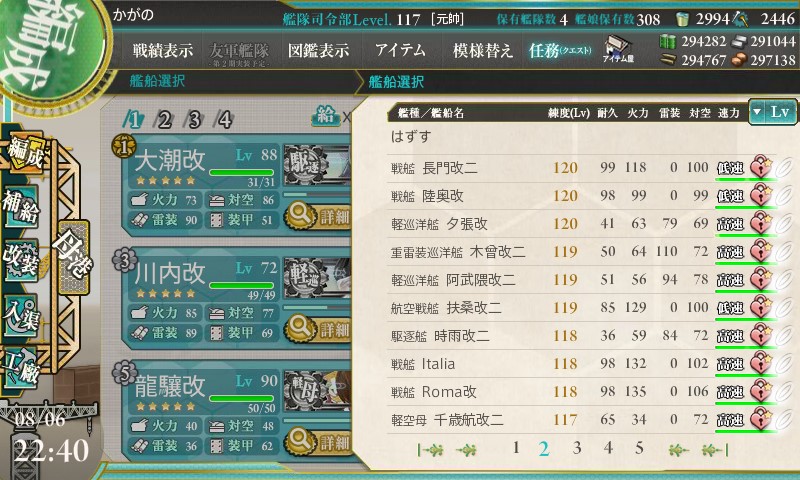 イベント直前ということでレベル2以上の艦娘を全員載せておきます。