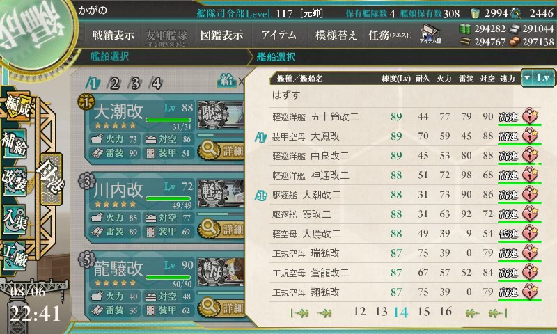 改二駆逐艦を全員レベル90まで上げようかなと思って頑張ってます。