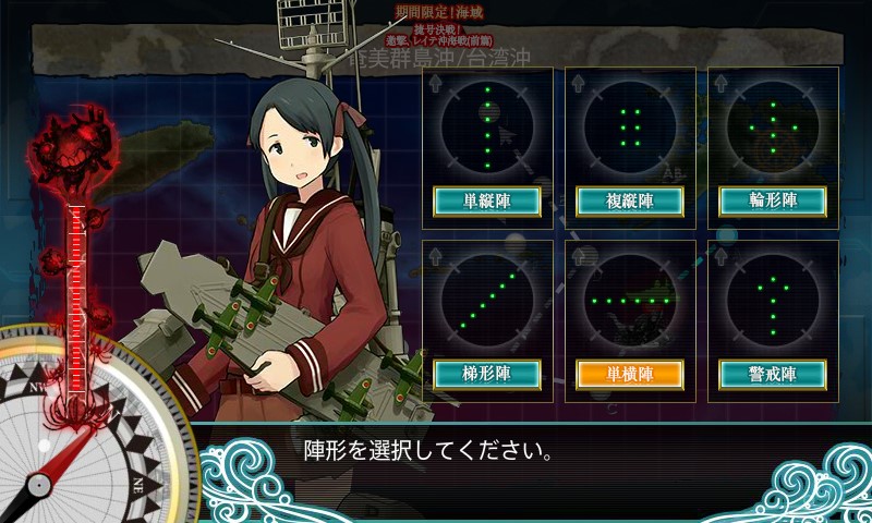2017秋イベントE1「第二遊撃部隊、抜錨!」です。いよいよレイテ沖海戦(前篇)が始まります。