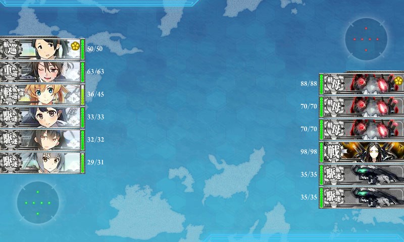 編成はギミック解除からボス撃破までこの編成でいきました。(航巡+重巡)2、軽巡1、駆逐3です。