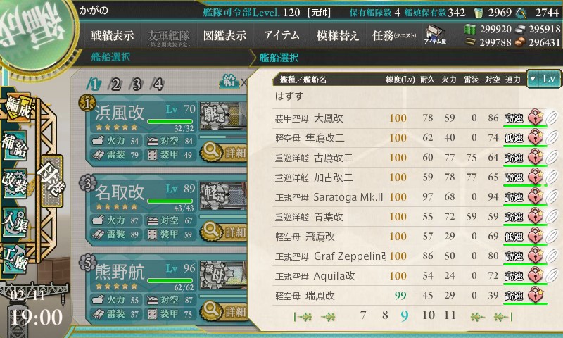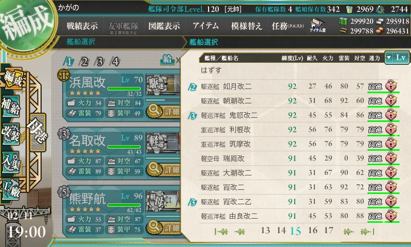 駆逐艦が徐々にレベル70に上がってきているところ。