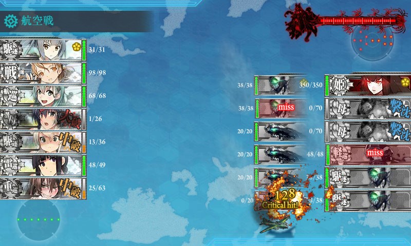 乙だと最後まで敵艦隊の航空戦力は増えないので攻略しやすいですね。