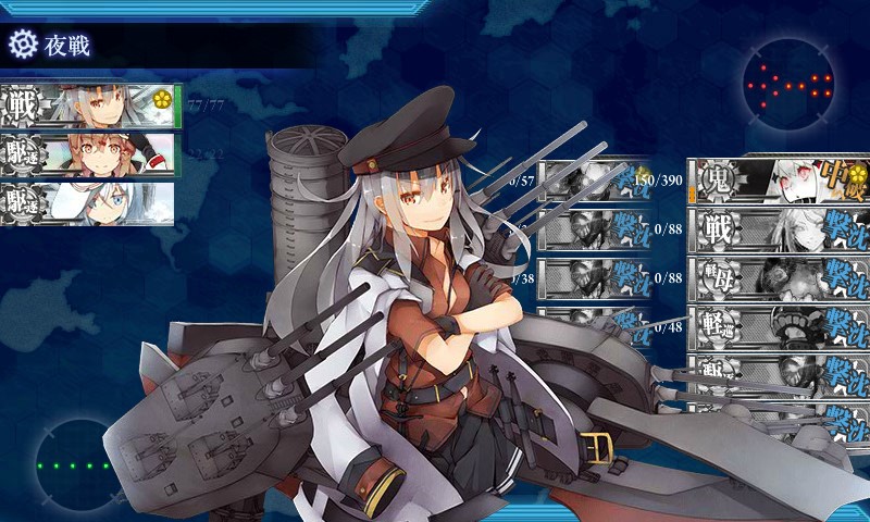 霞ちゃんは司令部が乗るので旗艦に。夜戦の先手に特効艦で攻撃を入れるという目的もあります。