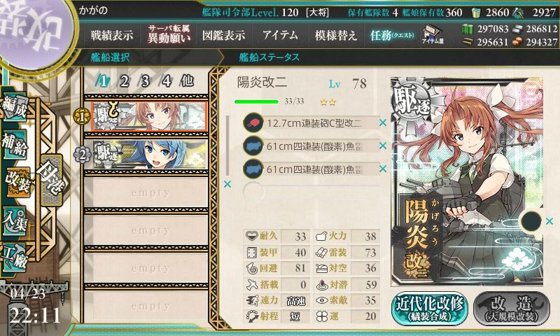 雷装が0の海防艦を駆逐艦5で改修に成功しないといけません。