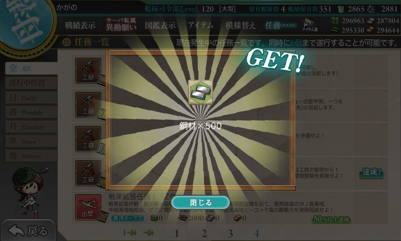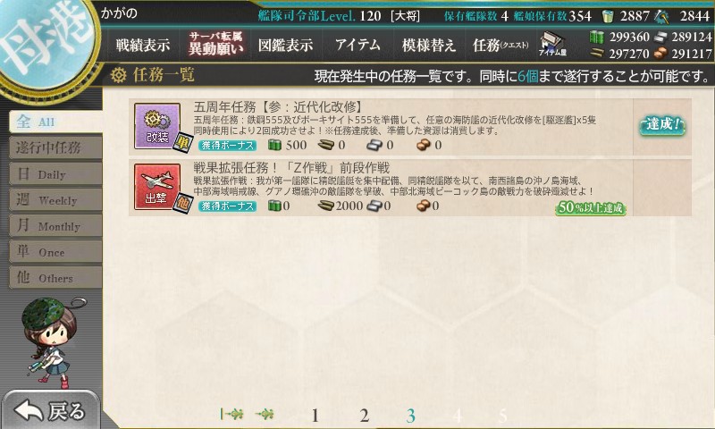 2つ目は1-1, 1-2, 1-3, 1-4, 1-5への出撃任務です。