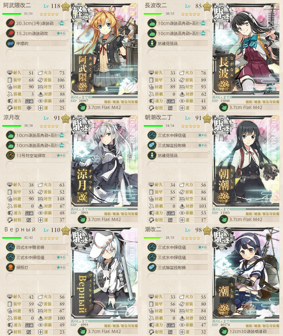 艦娘と装備が被らないようにしているので海域それぞれをみるとそれほど最適化はされていないです。