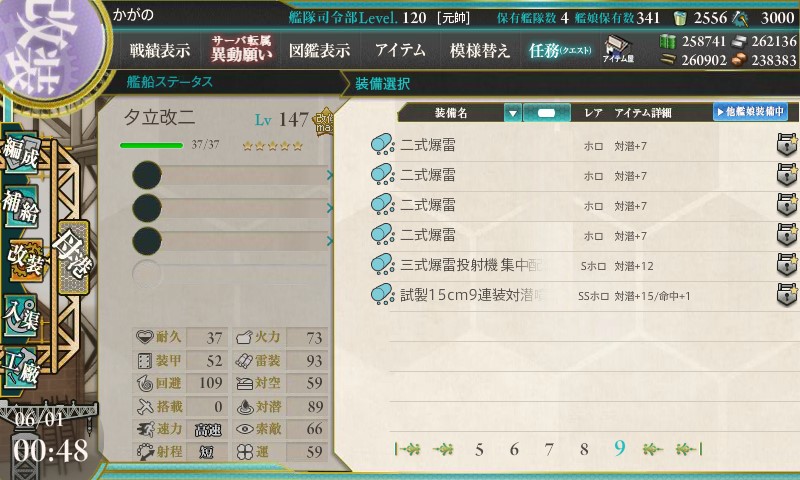 秘書艦を駆逐艦にして噴進砲と二式爆雷を装備します。