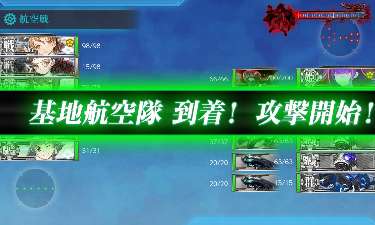 砲撃戦前でこんな感じ。攻撃機4を2部隊とも出しているので結構いけます。