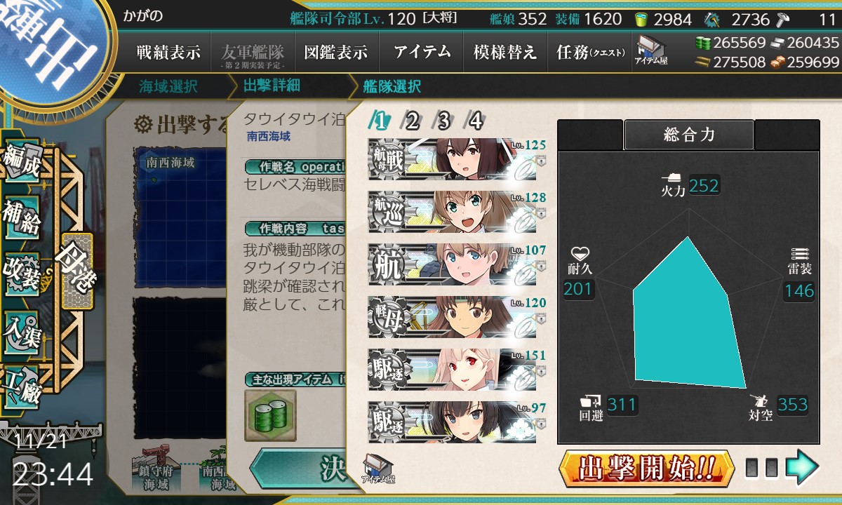 今回は昼戦で終わりました。昼で終わらなくても夜戦すれば問題なくS勝利はとれると思います。