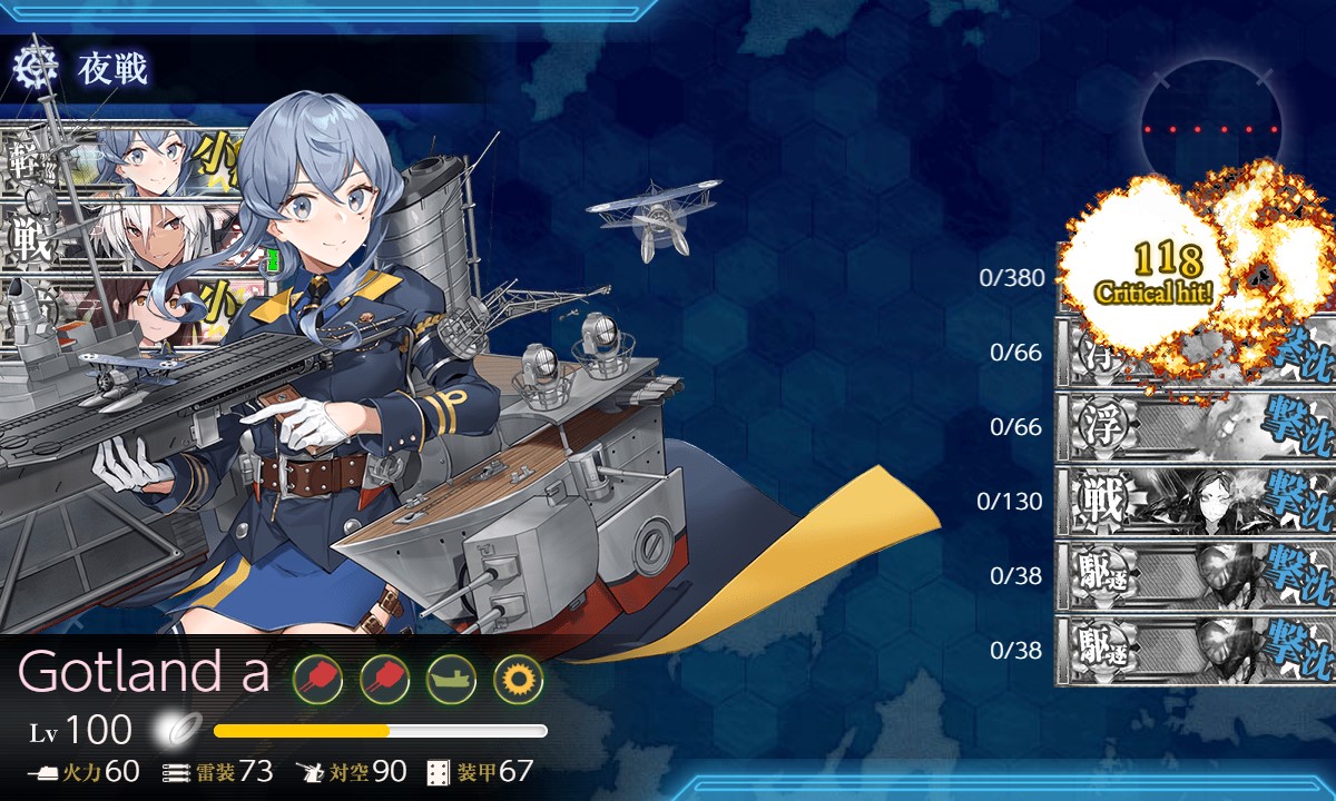 早い段階で敵随伴艦が沈んだのでゴトちゃんと風雲ちゃんは2回ずつボスを攻撃できました。