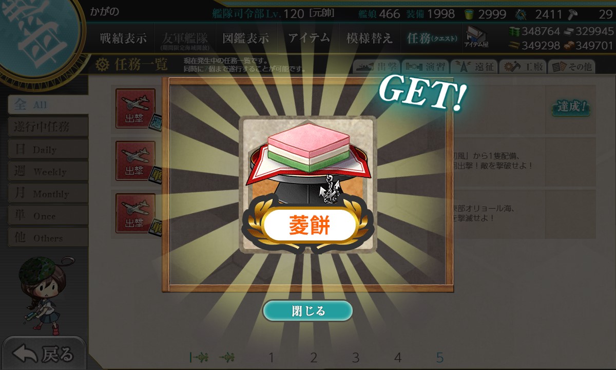 恒例の菱餅任務、その1つ目です。菱餅を1つもらえます。
