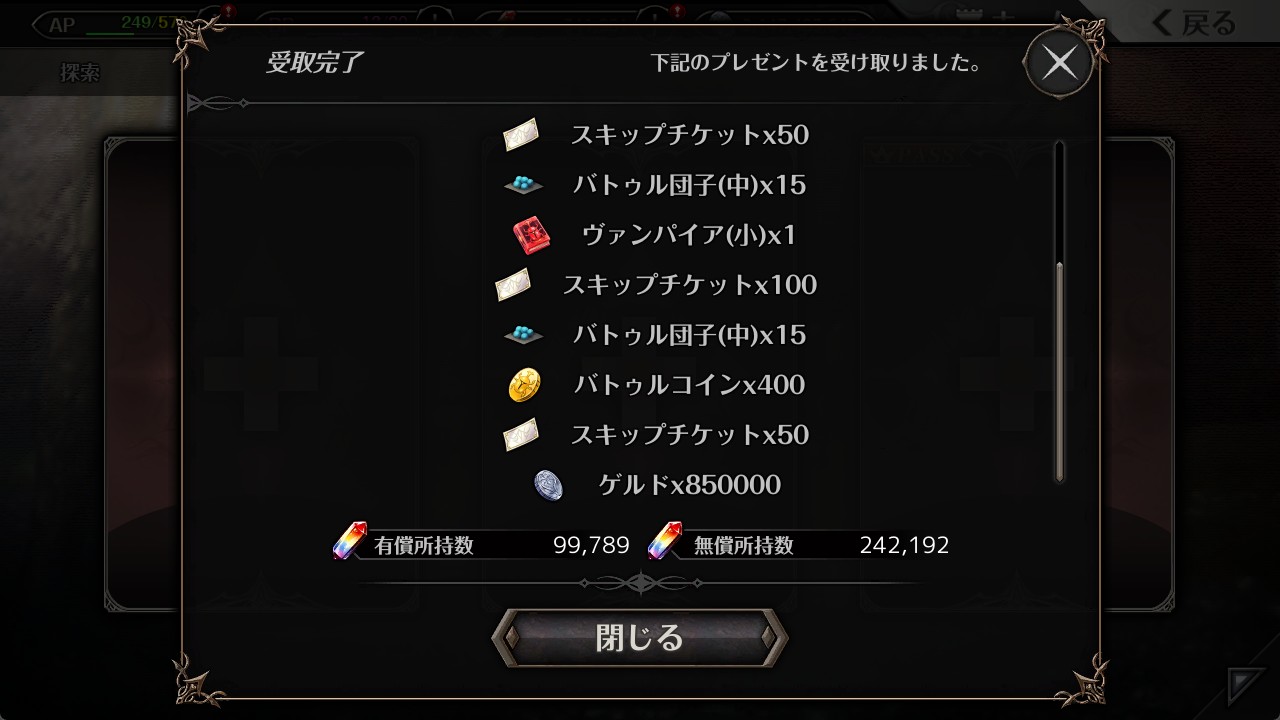 虫バトゥルの探索でヴァンパイア(小)のスキルが入手できました。