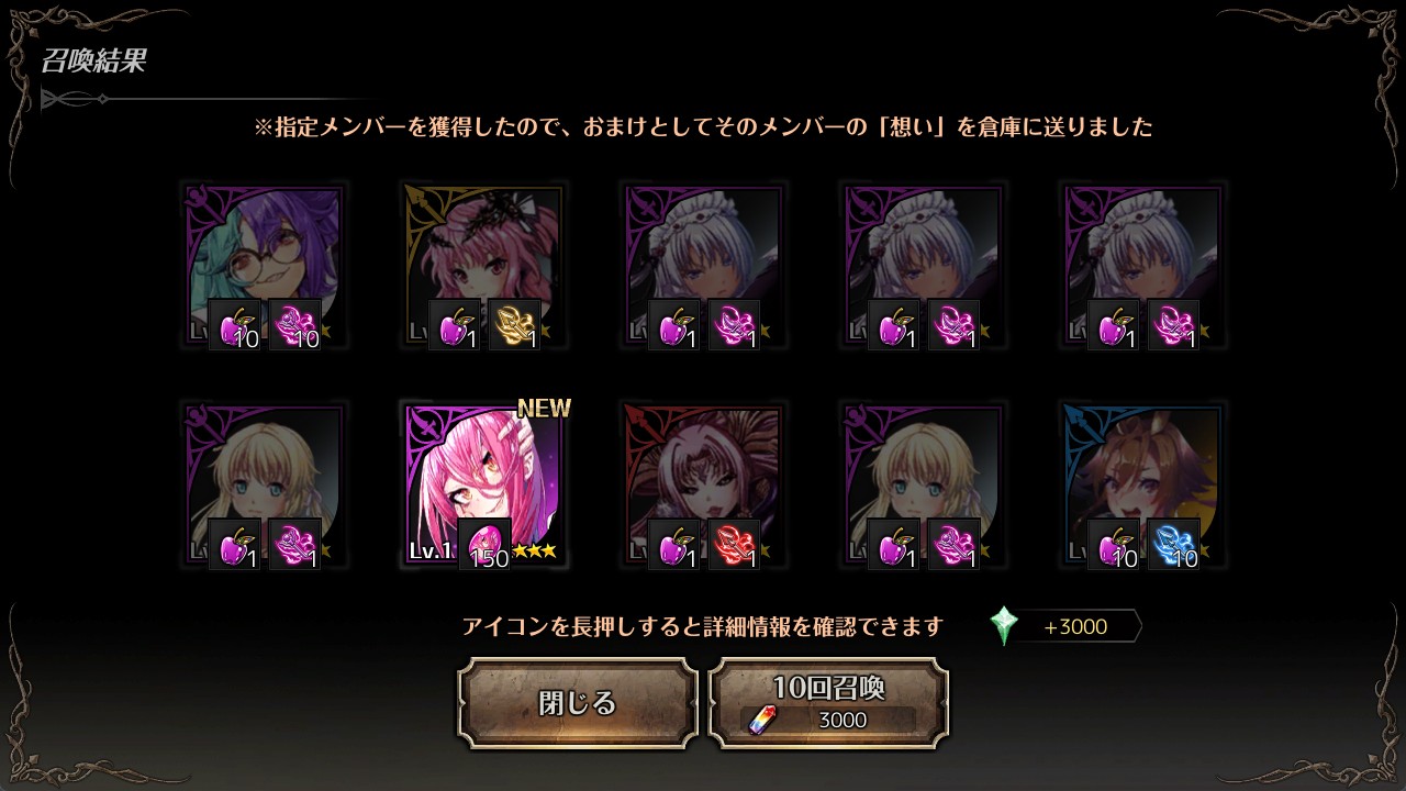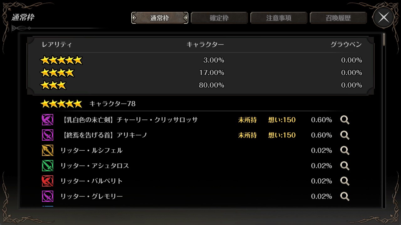 200連まで回しましたが、ピックアップキャラは出ていません。