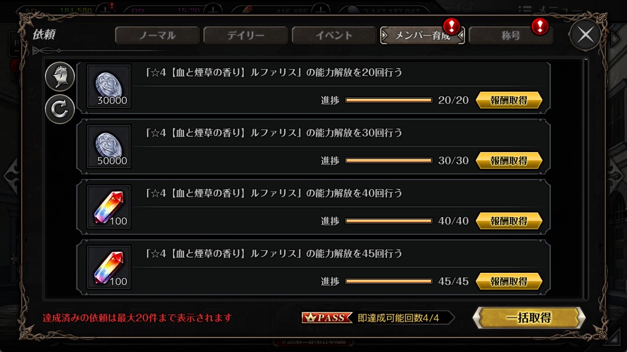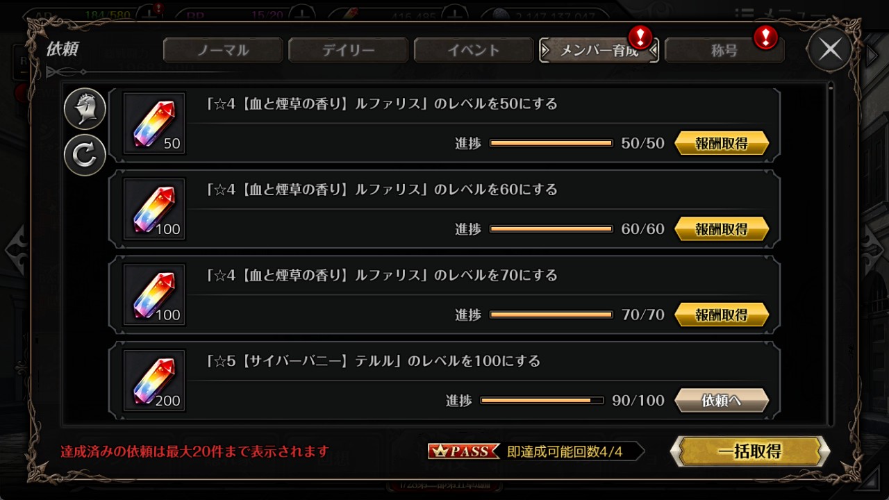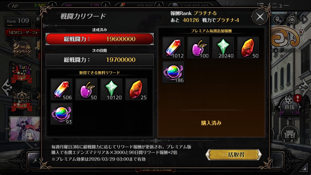 今週の戦闘力リワードです。