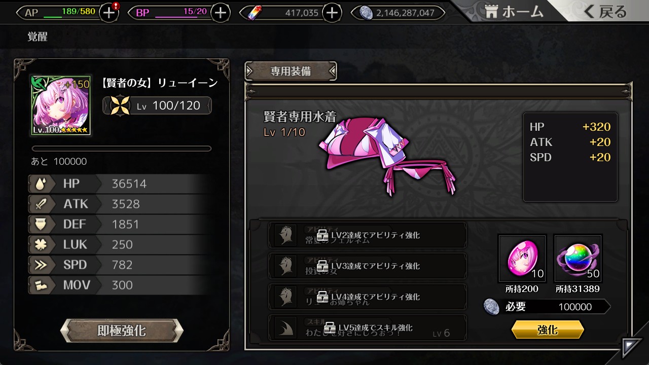 水着リューイーンが覚醒しました。