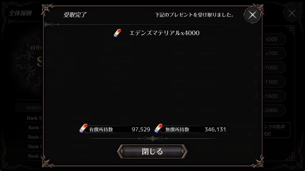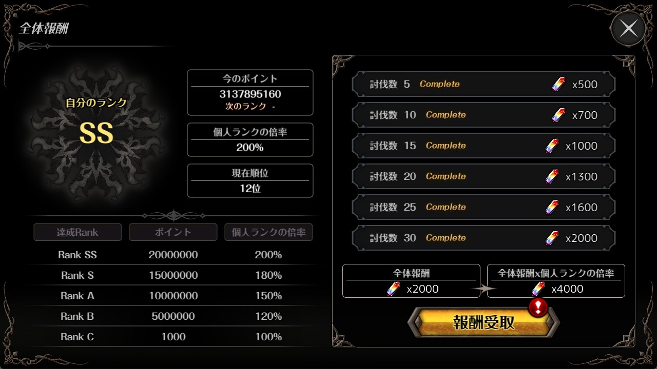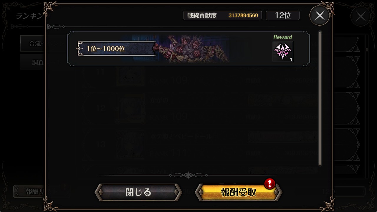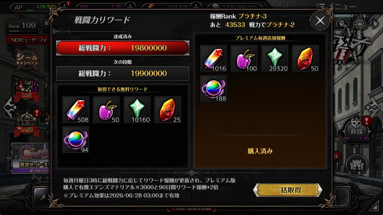 今週の戦闘力リワードです。